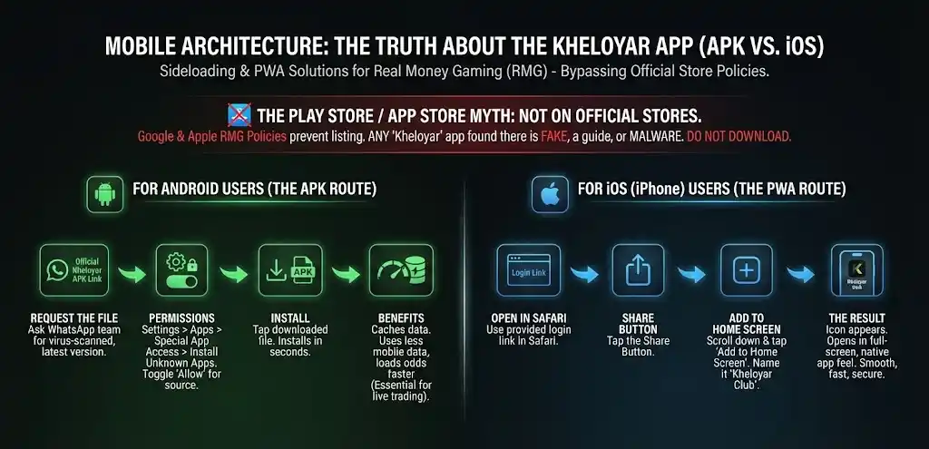 “Is the Kheloyar App on the Play Store?” No. And if you see one there, do not download it. It is likely a fake “Tips” app, a guide, or worse, malware. Google and Apple have strict policies against Real Money Gaming (RMG) apps in certain regions.