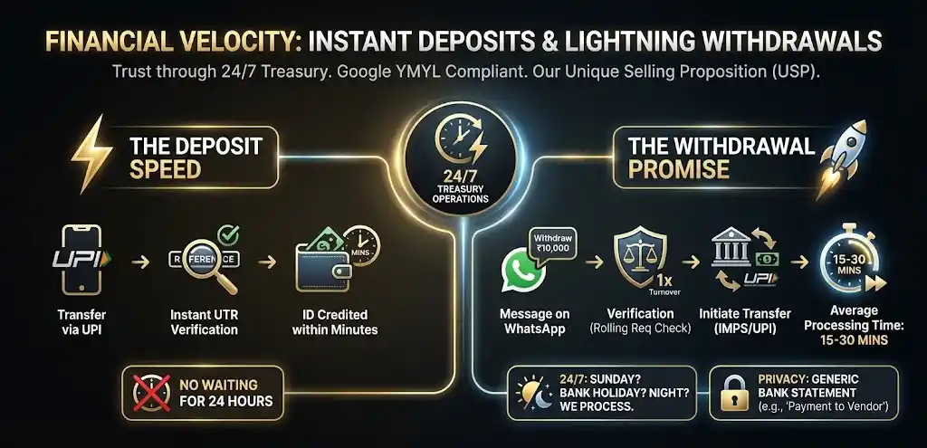 In the Google YMYL (Your Money, Your Life) algorithm, trust comes from financial handling. This is our Unique Selling Proposition (USP). Unlike the sub-agents on kheloyaar360 who might delay payments, we operate a 24/7 treasury.