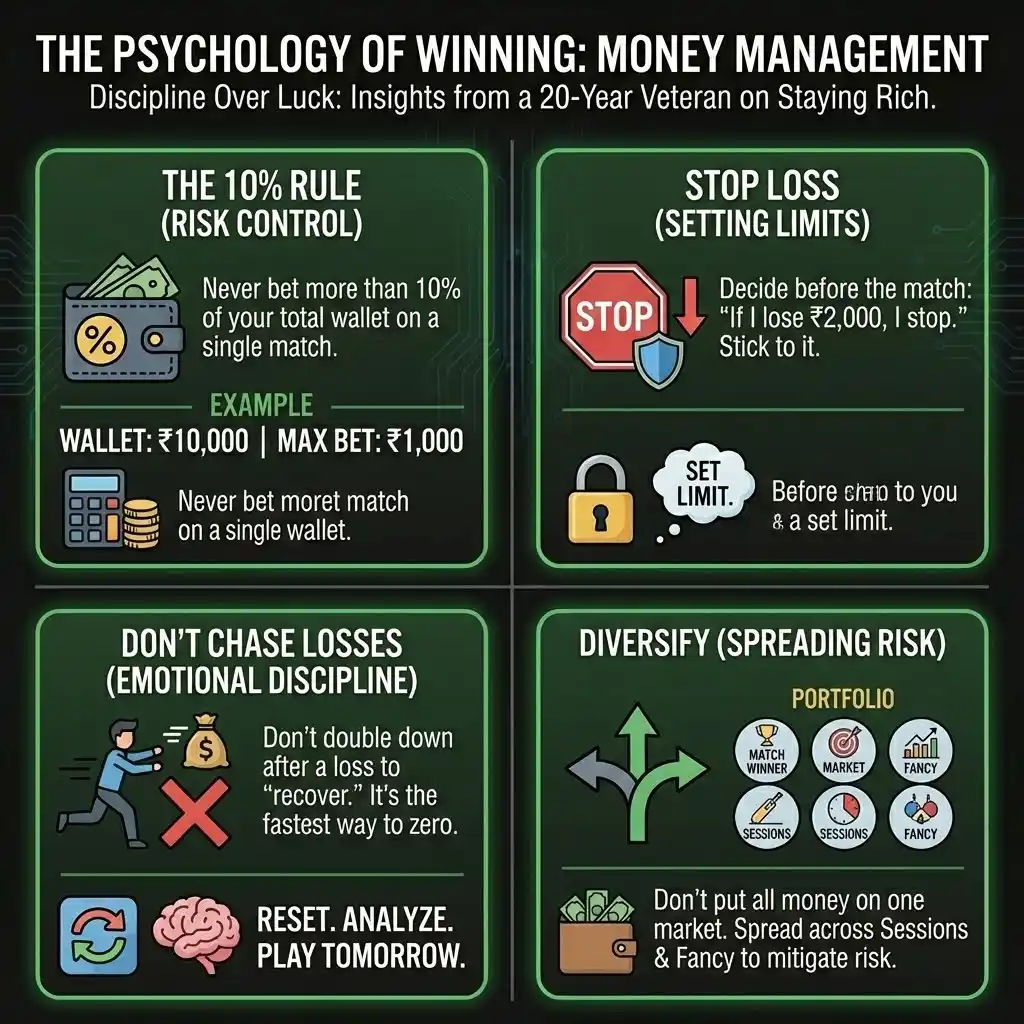 Diversify: Don’t put all your money on “Match Winner.” Spread it across Sessions and Fancy markets to mitigate risk.